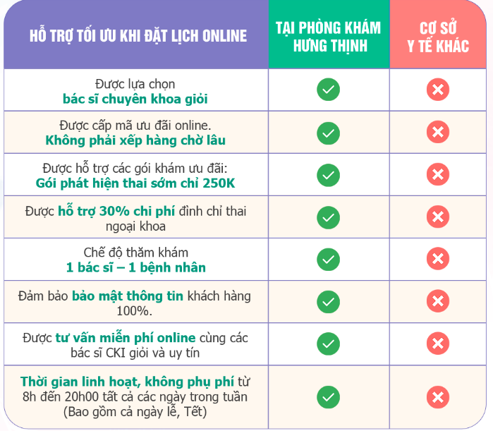 - Hỗ trợ 30% phí khi đặt lịch Online - Thủ thuật phá thai an toàn tại Hưng Thịnh
